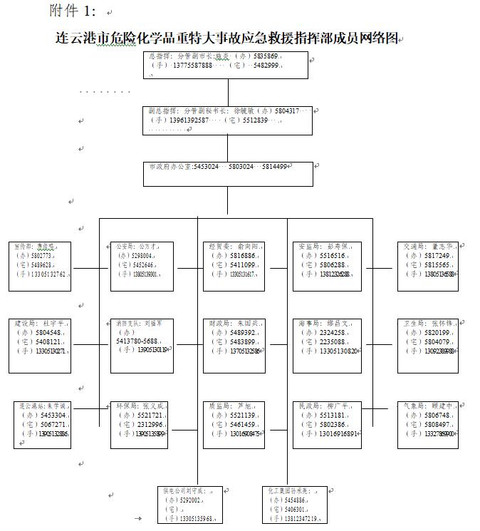 附件:1. 连云港市危险化学品重特大事故应急救援指挥部成员网络图