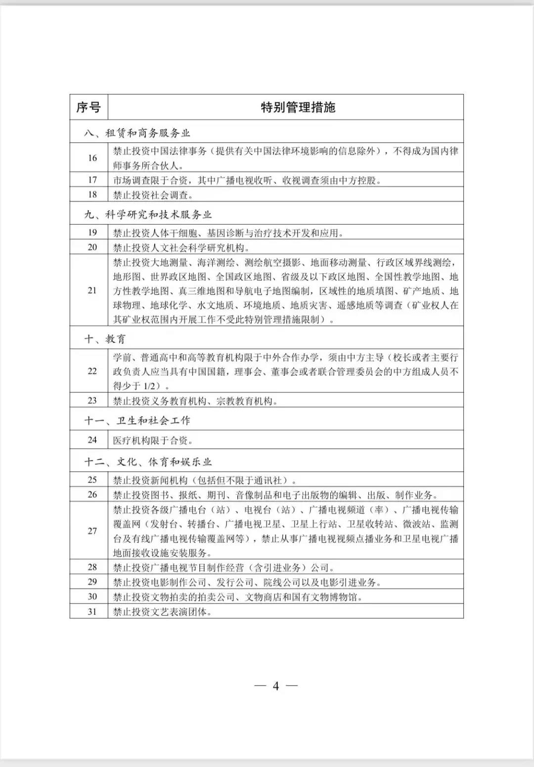外商投资准入特别管理措施(负面清单)(2021年版)